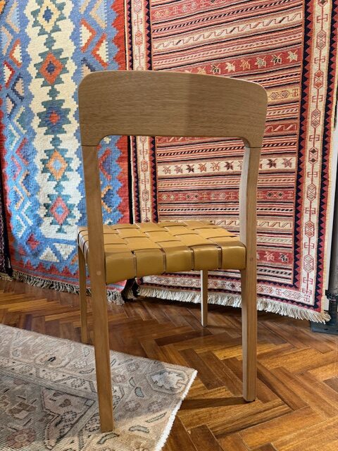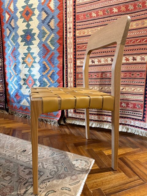 La silla prisma está hecha en madera maciza de mindi, es una silla sencilla pero con diseño único