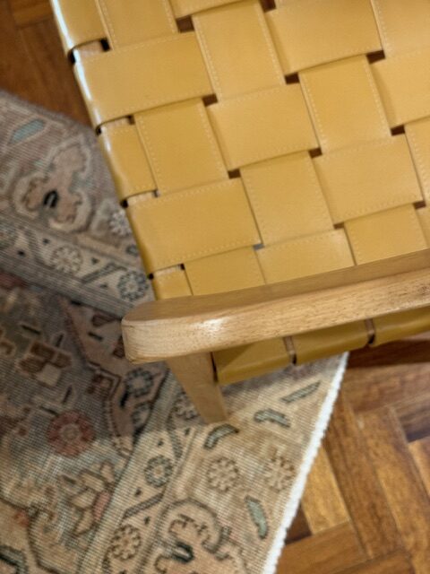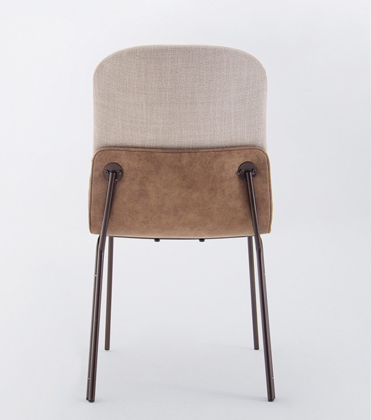 La estructura metálica crea ligereza y al mismo tiempo conecta el respaldo y el asiento, creando así la idea de unión, resistencia y firmeza de la pieza.