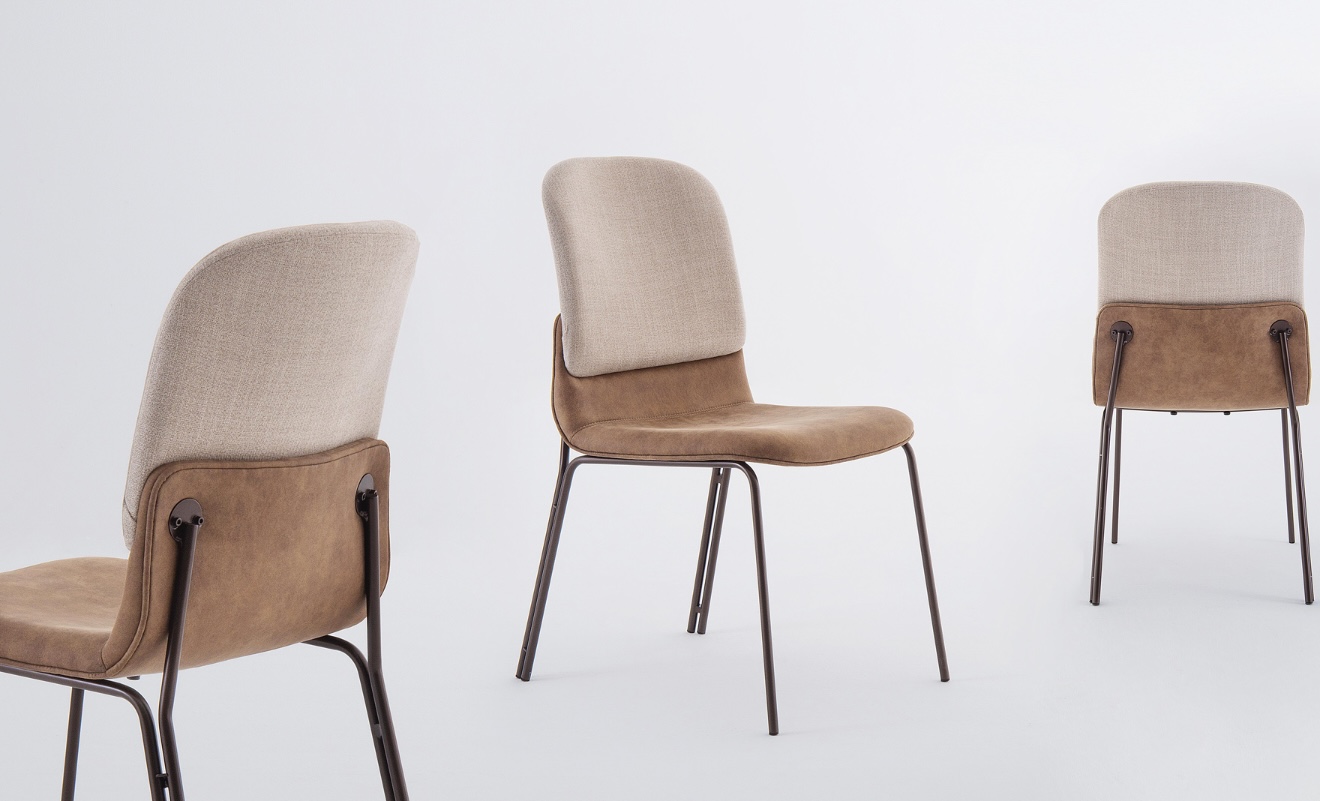 Dueto es una silla con líneas suaves, abierta a infinitas posibilidades. Combinando diferentes materiales y tejidos en el asiento y en el respaldo o usando tonos tono sobre tono, las sillas pueden tener diferentes estilos según el entorno que las rodea.