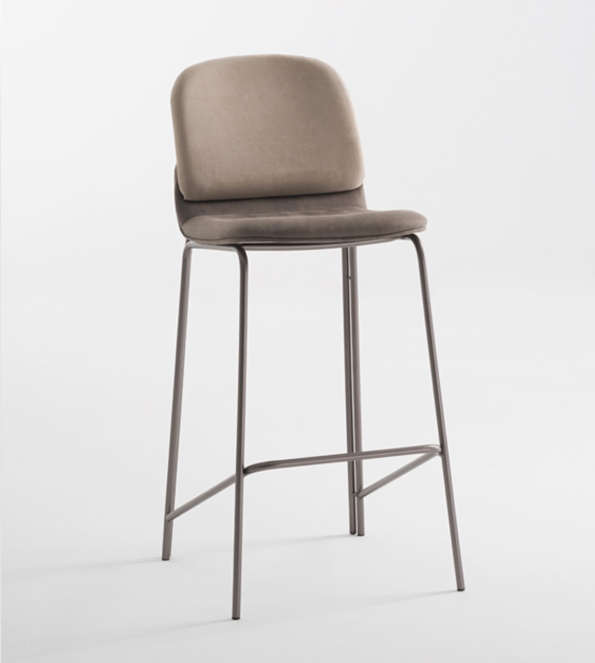 Dueto es un taburete con líneas suaves, abierto a infinitas posibilidades. Combinando diferentes materiales y tejidos en el asiento y el respaldo o utilizando tonos tono sobre tono, las sillas pueden tener diferentes estilos según el entorno que les rodea.