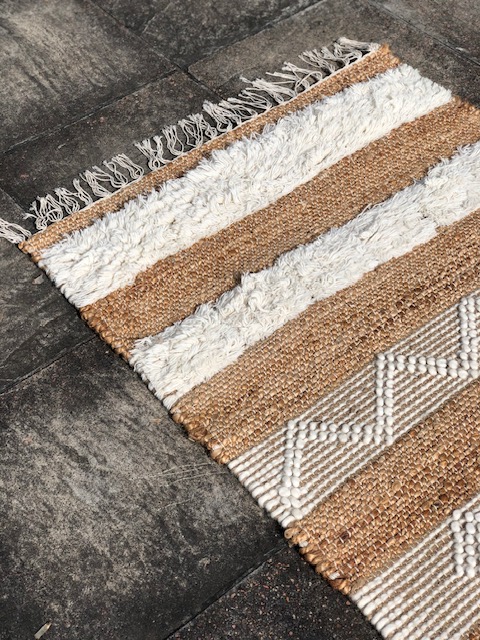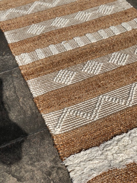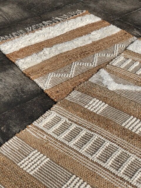 Nuestras alfombras de YUTE & ALGODÓN son confeccionadas con una mezcla de ambas fibras naturales. Es un tejido plano de características similares a un Kilim. Liviano y de poco espesor, son ideales para cuando se quiere cubrir un área sin invertir demasiado.