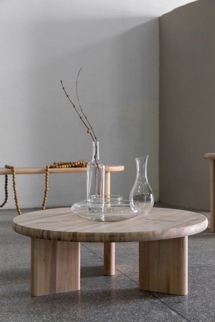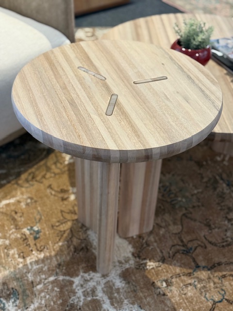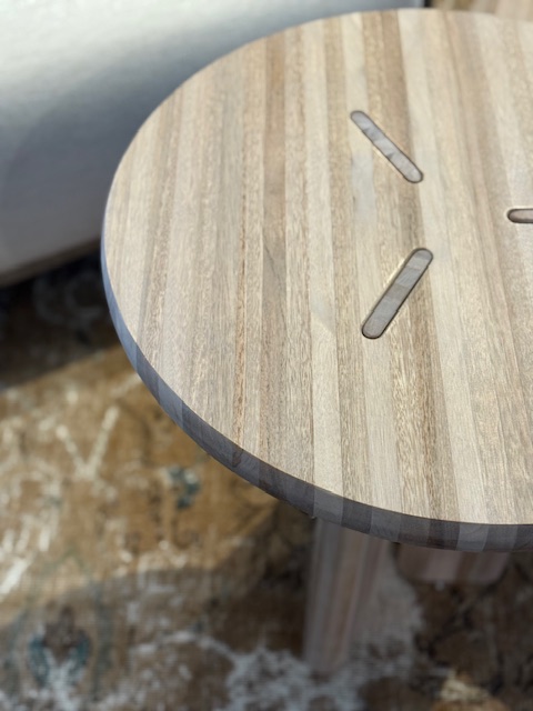 Mesa lateral de madera Mindi con terminación en gris oscuro lavado