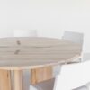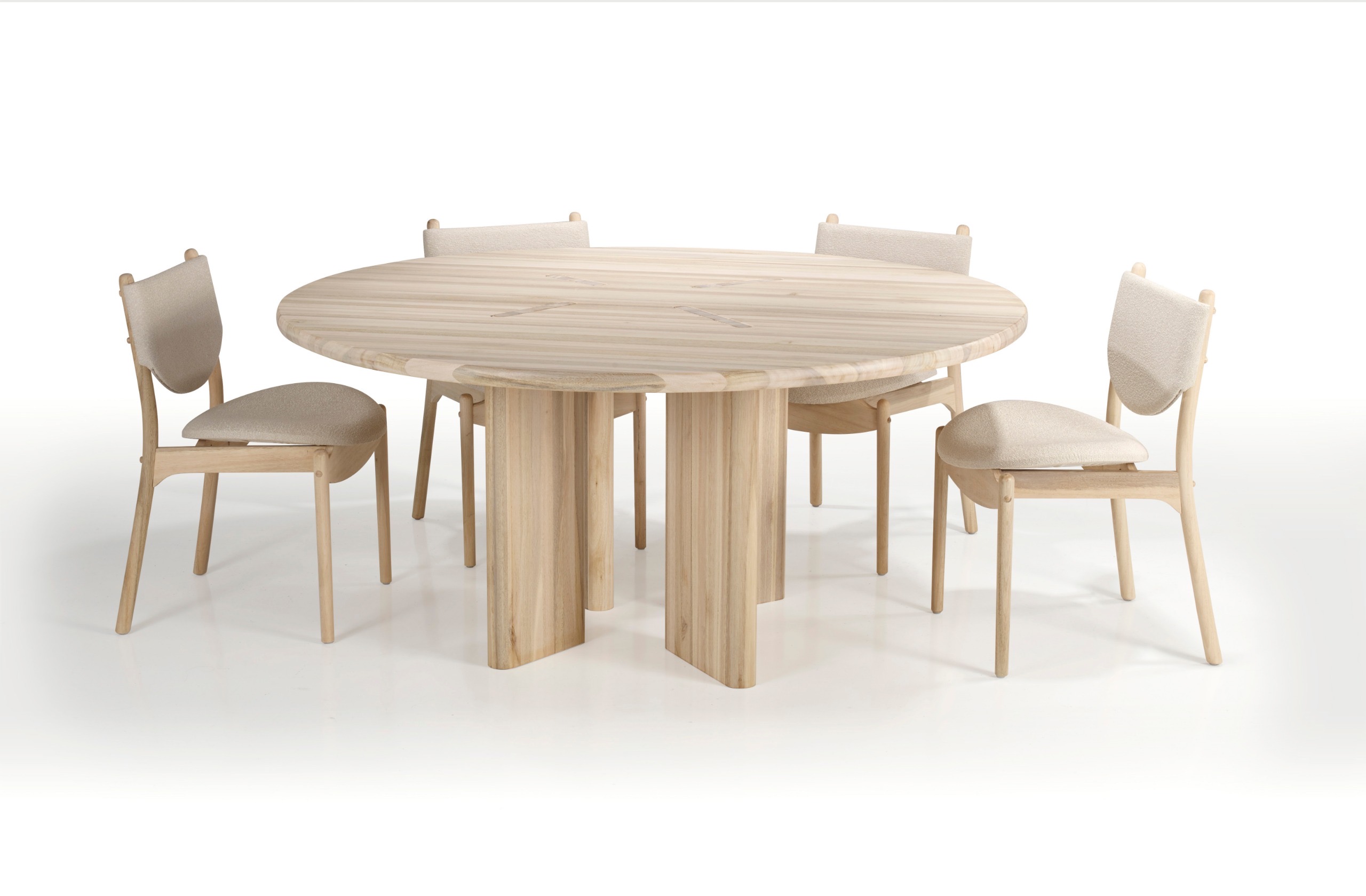 La silla prisma está hecha en madera maciza de mindi, es una silla sencilla pero con diseño único
